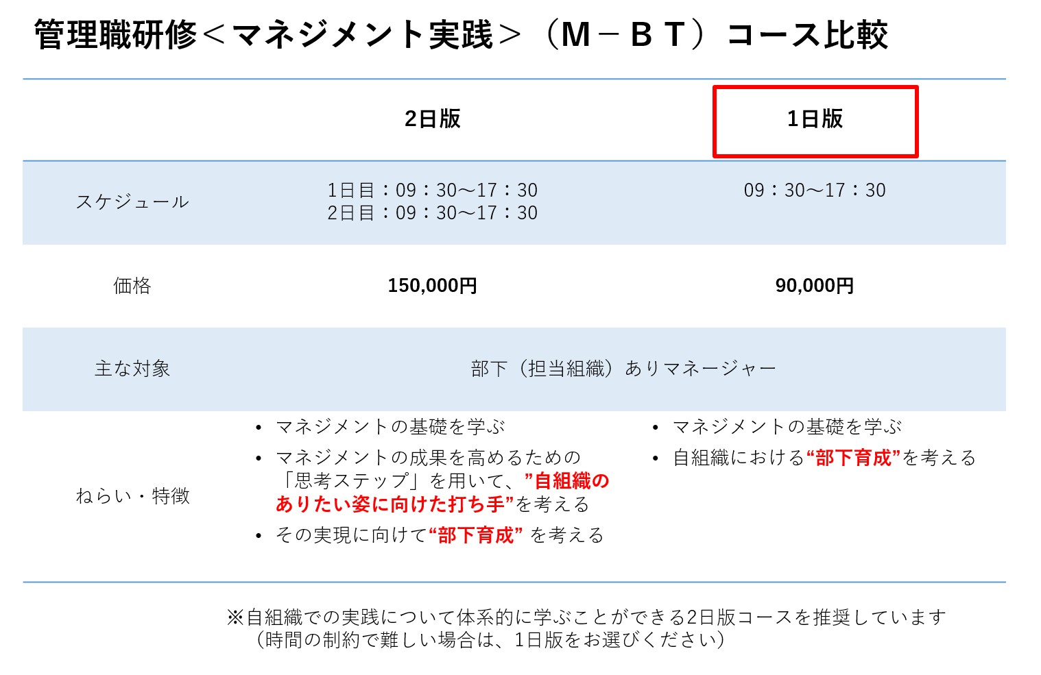 マネージャーに昇格して間もない方から、昇格後1年以内の方にお勧めです。