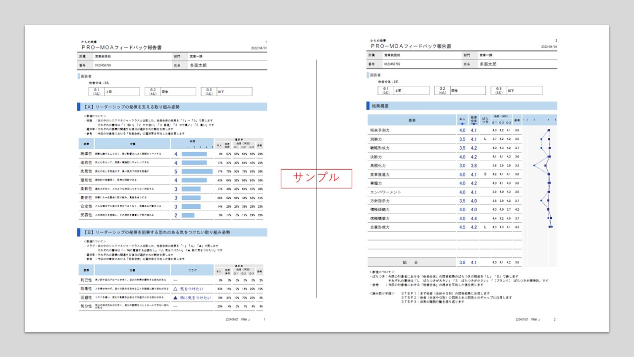 ※PRO-MOA:リーダーシップに関する国内外の研修関する国内外の研究、弊社の豊富な実績をもとに開発した経営人材ならではの360度サーベイです。